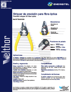 Ref:VFTSA931EN El Pelador / Stripper de precisión de 3 posiciones para fibra óptica de la marca VELTHOR es un herramienta diseñada para remover el recubrimiento de 250 ɥm y el revestimiento de 1.6mm a 3mm de fibra ópticas de 125 ɥm con gran precisión y alto desempeño. Ver Catálogo